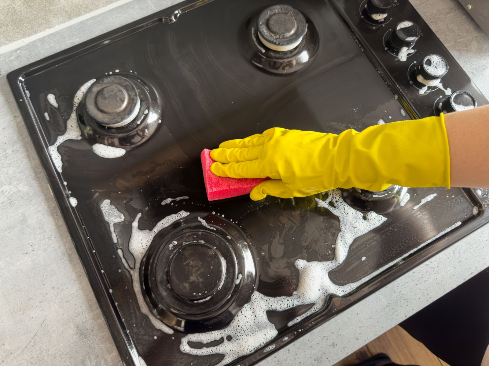 V první řadě ovšem sporák vypneme, necháme vychladnout a odpojíme od plynového připojení i elektřiny. Pak můžeme odejmout mřížky, chrániče a hořáky a vložit je na hodinu do horké vody se saponátem, aby se odmočily. Jsou-li silně zanesené, je vhodné do vody přidat jedlou sodu, která má silné odmašťovací účinky. Po odmočení všechny části vyčistíme obyčejnou houbičkou na nádobí, případně jemným kartáčkem. Ucpané malé otvory, kudy plyn prochází, velmi opatrně propíchneme jehlou nebo párátkem.
