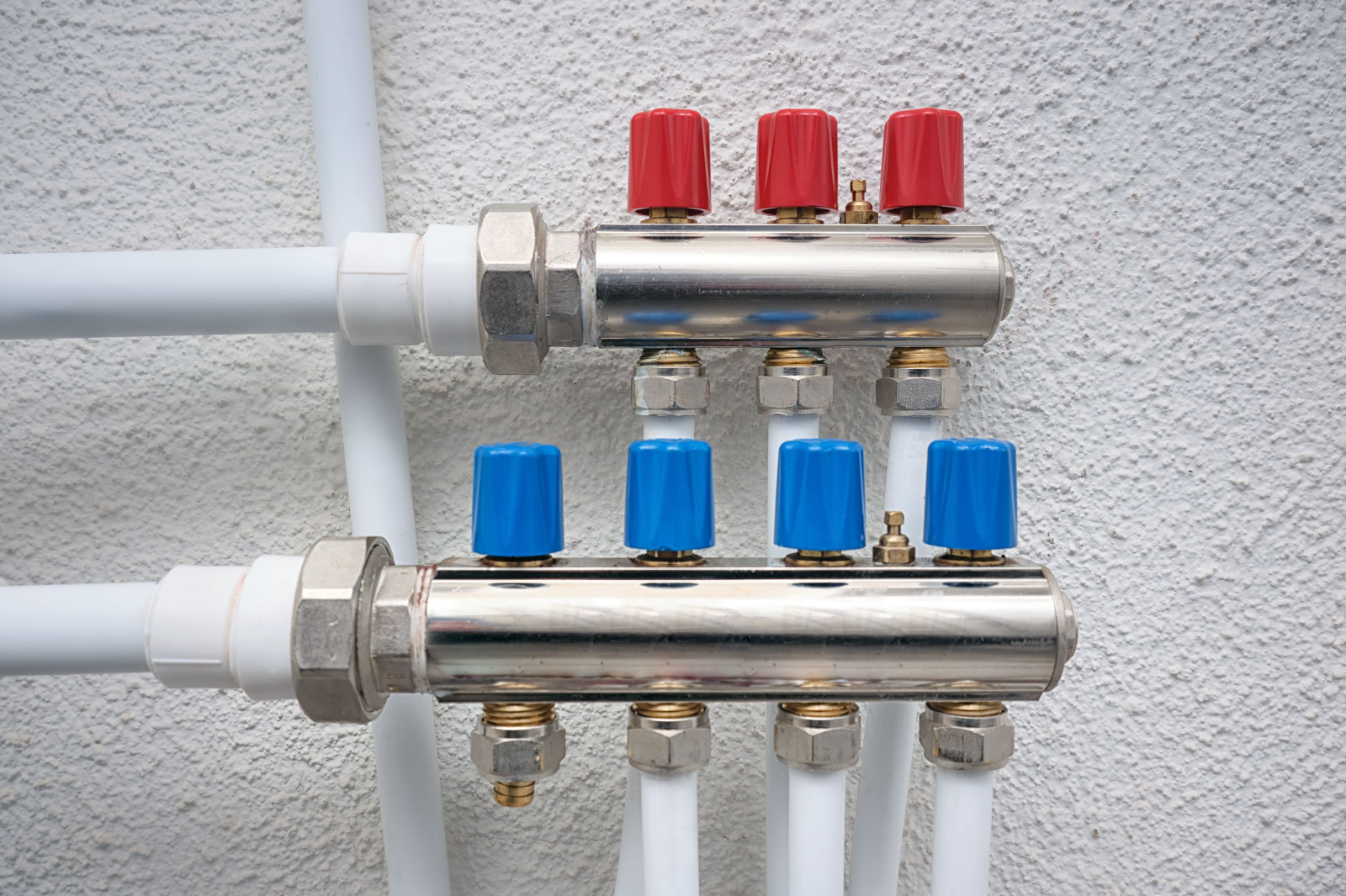 2. Na rozdělovači najděte odvzdušňovací ventily, které jsou napojeny na jednotlivé okruhy vytápění. Všechny je uzavřete.