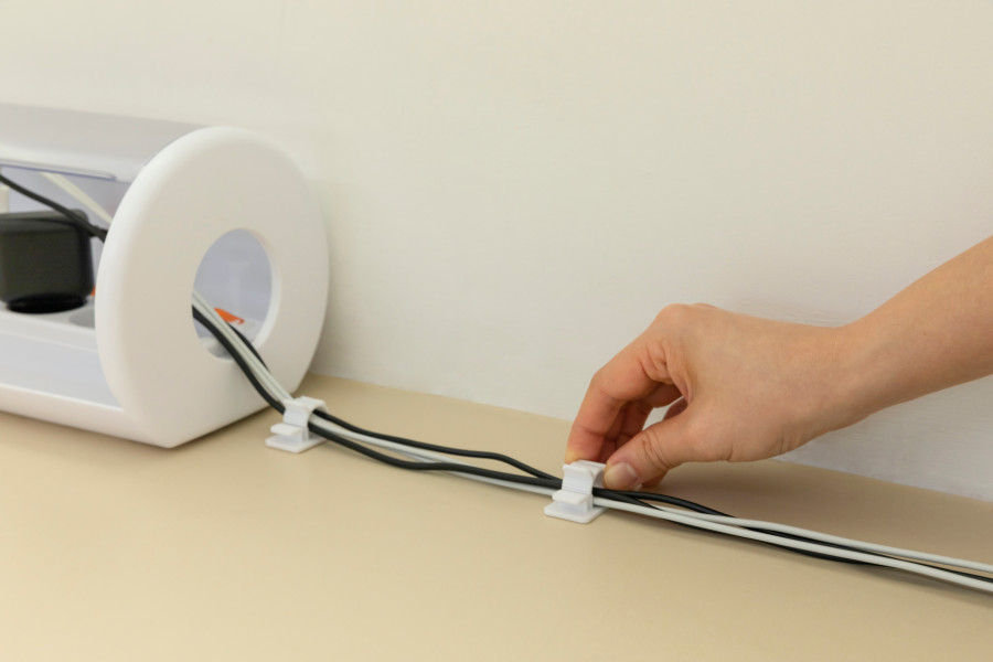 Pomoci mohou také organizéry kabelů. Většinou se jedná o malý box nebo košík s dírami po stranách. Prodlužovačku do něj vložíte a dírami vyvedete kabely. Je možné pořídit si také variantu, která lze připevnit přímo ke stranám stolu nebo k jeho desce. Všechny důležité kabely pak budete mít po ruce, aniž byste se na ně museli dívat.