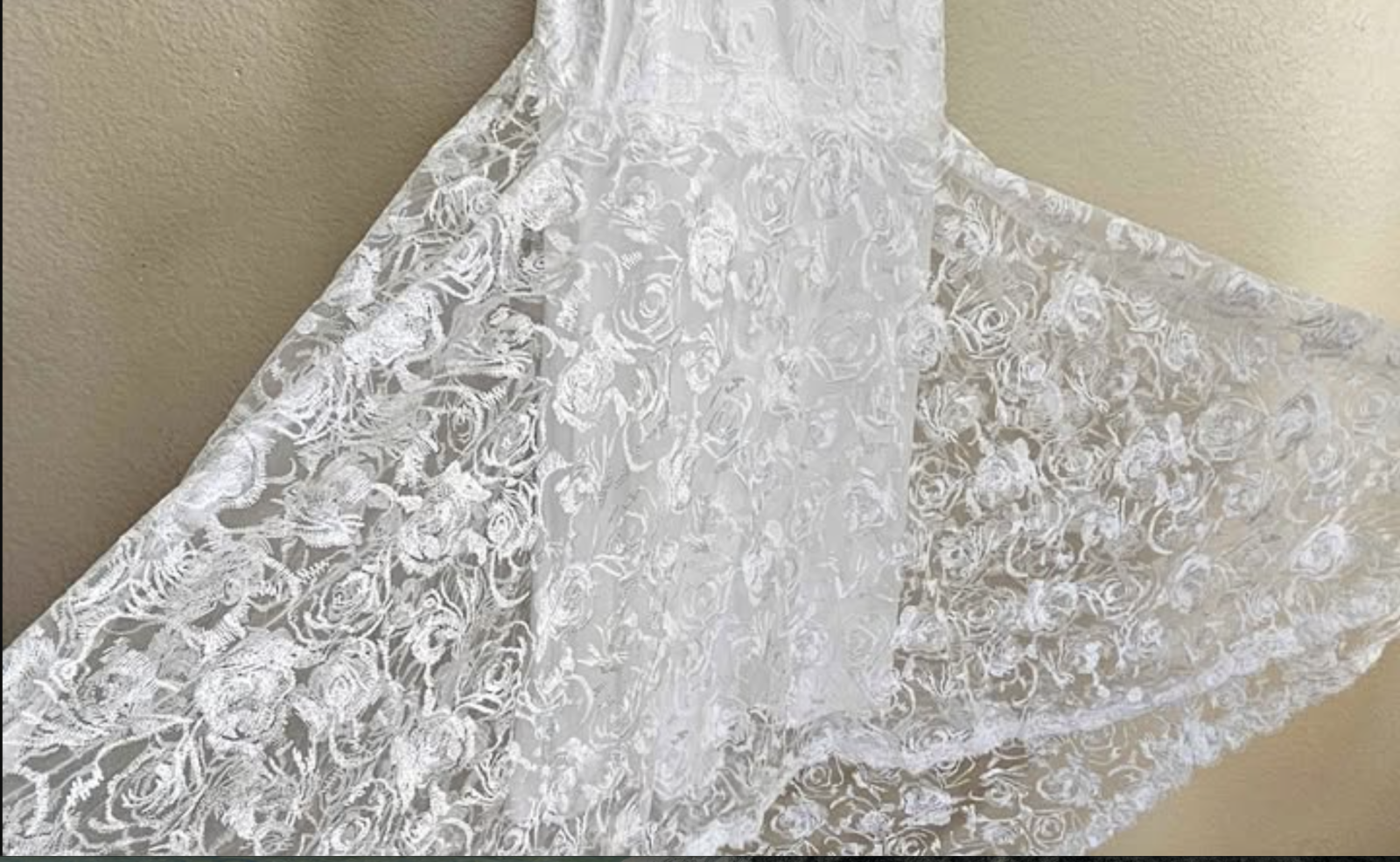 Bílé krajkové šaty Shein zobrazoval na plus size modelce, takže Mirka měla zhruba představu, jak budou působit na její vlastní postavě. „Byl to jednoduchý střih do áčka s dlouhými rukávy. Tak nějak jsem počítala s tím, že možná budou moc dlouhé a budu je muset zkrátit, ale to, co přišlo, jsem opravdu nečekala,“ popisuje Mirka.