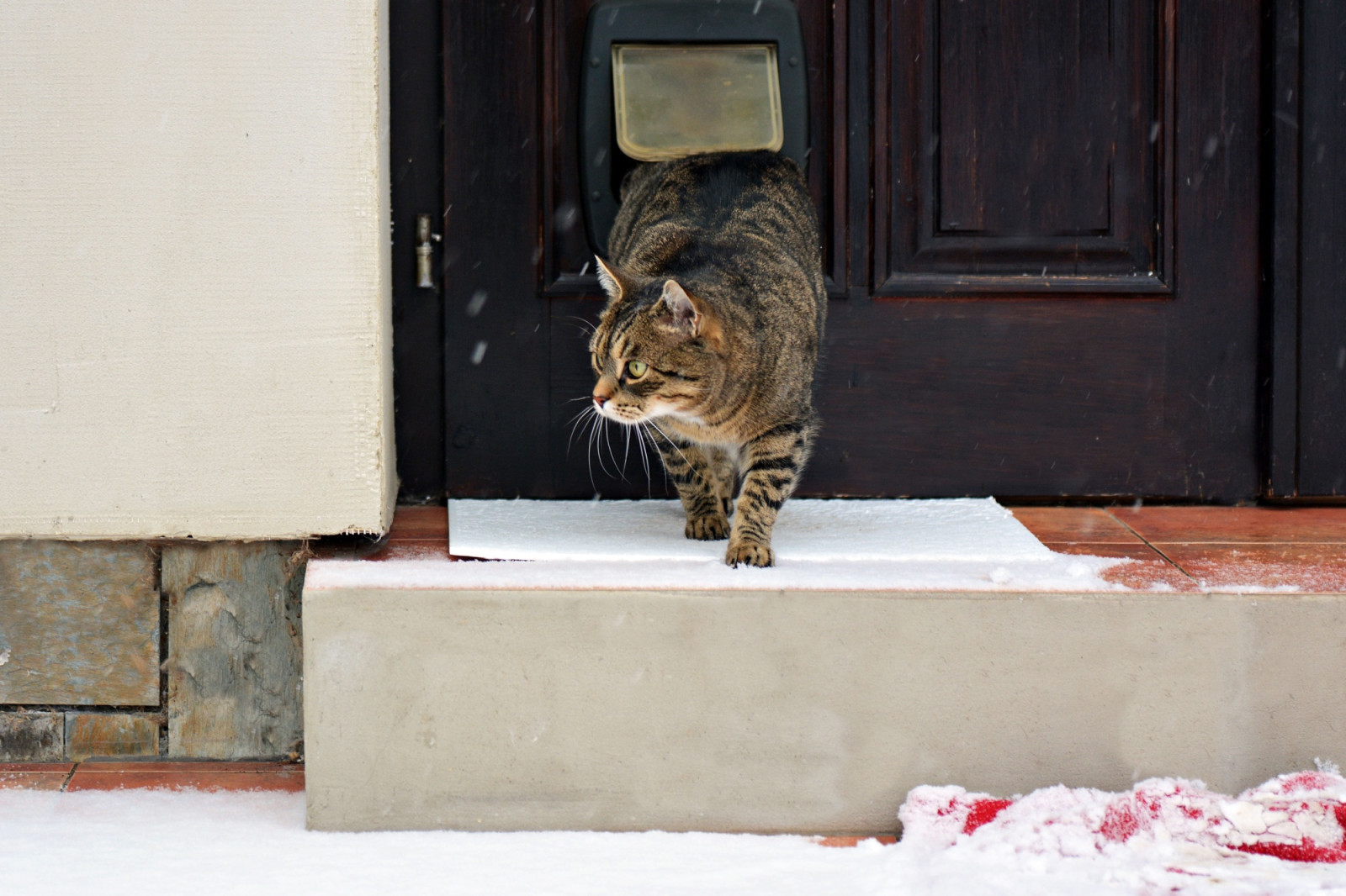 Pokud je vaše kočka zvyklá na pobyt venku, nemusíte jí přístup ven s příchodem mrazivého počasí automaticky znemožnit. Kočky se na chladnější podmínky zpravidla dokážou dobře adaptovat. Nicméně z bezpečnostních důvodů by měly mít vždy možnost vrátit se do teplého prostředí. To lze řešit například kočičími dvířky nebo vyhřívaným venkovním přístřeškem. Během velmi chladného počasí je vhodné kočku na noc vzít domů. Ačkoliv může být zvyklá chodit se „venčit“ do přírody, během zimy by měla mít možnost navštívit i klasickou kočičí toaletu v teplém prostředí. Kočka se sama rozhodne, zda je pro ni bezpečné trávit čas venku, nebo se raději přesune dovnitř.