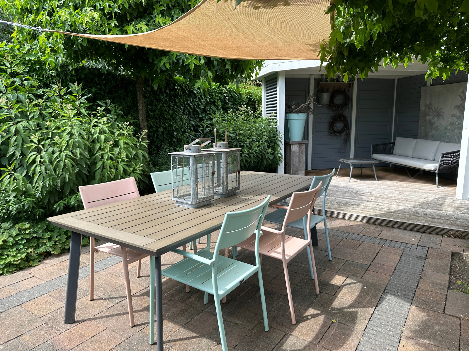 Výhodou je také fakt, že tkaná plachta dýchá. Pod polykarbonátovou střechou pergoly se naopak v létě tvoří “skleníkový efekt” a přes poledne zde bývá velmi nepříjemné vedro. U plachet se horký vzduch dostává jednoduše pryč přímo látkou a pocitová teplota je tak o 5–7 °C nižší než u pergoly.