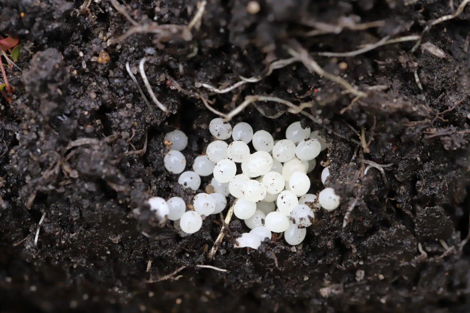 Je důležité neplést si je s houbovými útvary nebo zrny perlitu z hlíny. Slimáčí vejce jsou měkká, hladká, průsvitná a mají jemný gelovitý povrch. Když je vezmete mezi prsty, nepráší ani nepraskají jako suchá granule, ale jemně povolí.