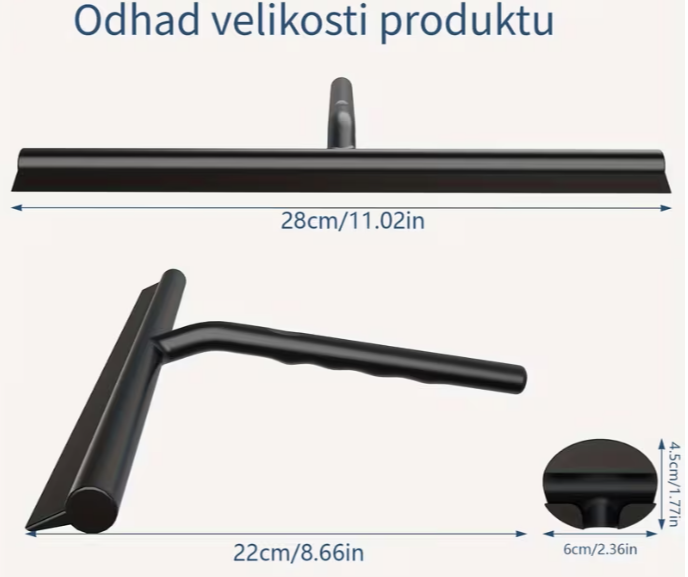 Silikonová stěrka na sklo s magnetickým hákem je oceněna na 296 korun. Co se týče velikosti, deklarovaná délka stírací plochy činí 28 centimetrů. Délka samotné stěrky (rukojeť a stírací plocha z bočního úhlu pohledu) odpovídá 22 centimetrům.