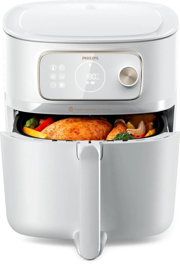 Pokud hledáte model, který nabízí nejpokročilejší funkce, pak stojí za zmínku Philips 7000 Series Airfryer Combi 8,3l XXL Connected 22v1 HD9876/25. Ten se může pochlubit 22 programy, automatickou regulací teploty a solidním příslušenstvím. Jednotlivé komponenty je navíc možné umývat v myčce, což usnadňuje čištění.