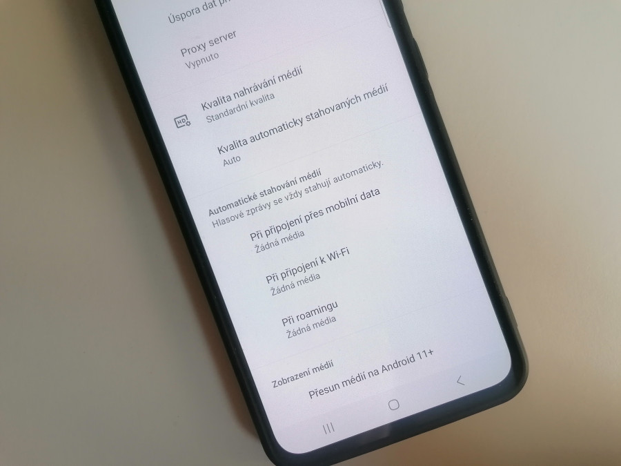 5. V části Automatické stahování médií odklikněte pro mobilní data, Wi-Fi i roaming možnost všechny možnosti tak, aby se vám zobrazilo Žádná média
