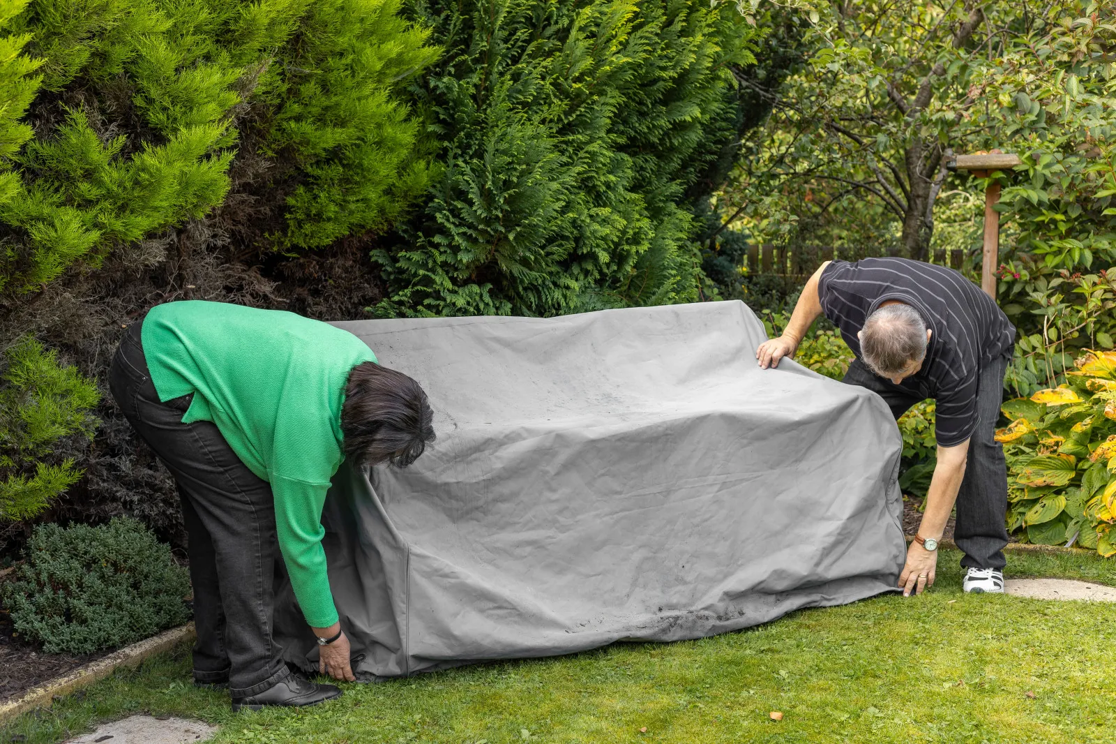 Pokud nábytek přikrýváte, děláte dobře. Je ale zapotřebí zvolit správný materiál. Nábytek na zimu nikdy neschováváme pod igelit. Právě zde má totiž tendenci se zapařit a opět podpořit vlhkost, plíseň a hnilobu. Stejně tak není dobré sáhnout po dekách, které jsou promokavé. Ideálním řešením je zakoupit specializovaný potah, který bude rozměrově odpovídat nábytku. Právě ten je totiž obohacen o větrací otvory, díky kterým přebytečná vlhkost odchází z prostoru ven.