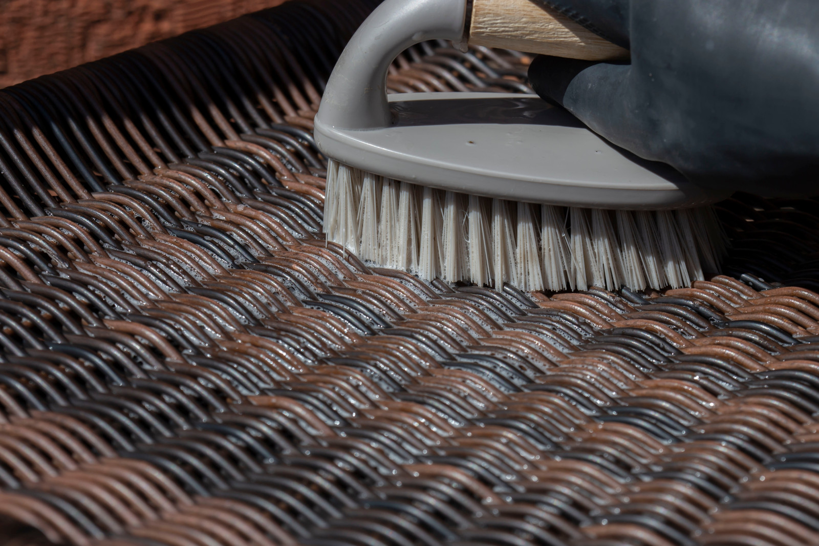 Plastový nábytek: Nábytek omyjeme mýdlovým saponátem a počkáme, až dostatečně oschne.